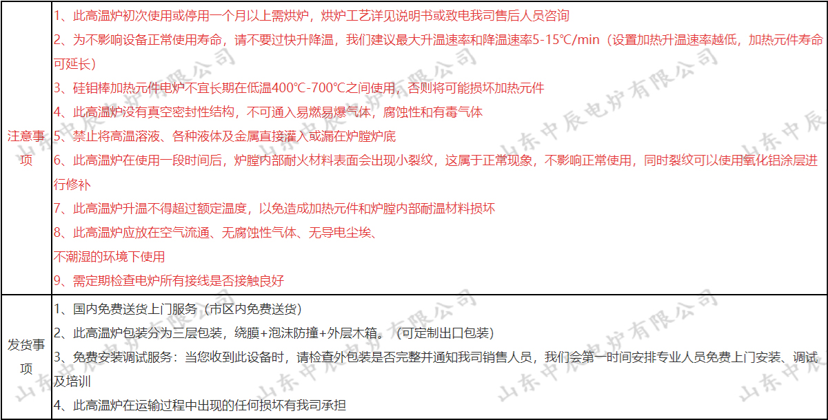 加熱元件兩支,棒具兩套,坩堝鉗一把,高溫手套一副,說明書、合格證各一份,出廠檢測報告一份,送貨單一份,爐門隔熱磚一塊(根據爐型配訂) | |||||